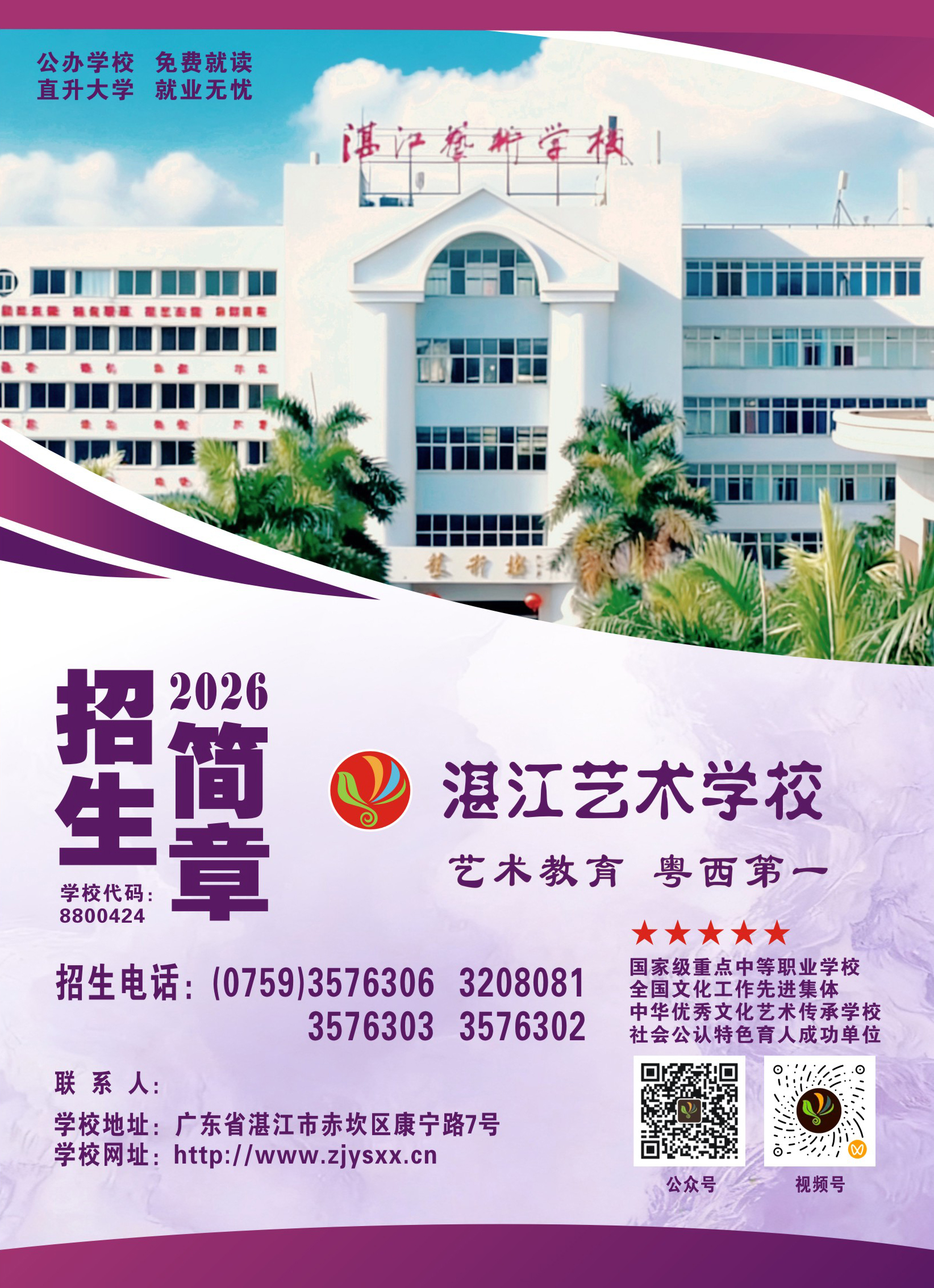 招生咨询电话:0759-3576302、3576303、3576306
